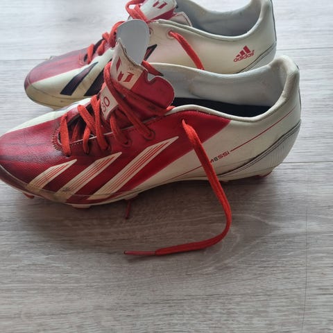 Adidas fotballsko i hvit grunnfarge med flerfargede detaljer. Skoene har lisser og overliggende tunge med Adidas-logo. Yttersålen har faste knotter egnet for spill på kunstgress. Innsidefôr i kontrastfarge.