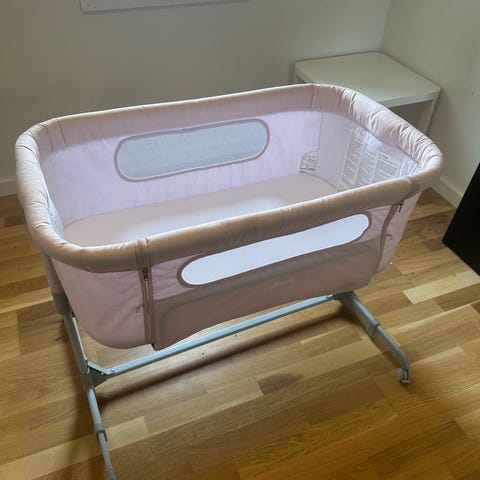 Selger denne bed side criben som er brukt og kjøpt brukt grunnet var litt for lav ved siden av sengen vår. Vi skal gå over til en annen.