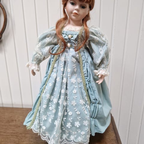 Dukkene er laget i porselen med myk kropp, og har detaljerte ansikter og langt hår i forskjellige frisyrer. Én dukke har lys kjole med blonder, én har rosa kjole med blonder og sløyfe i håret, og én har mørk grønn kjole med dekorative lukkinger. Egner seg som samleobjekter eller til dekorasjon. Selges samlet til kr150
