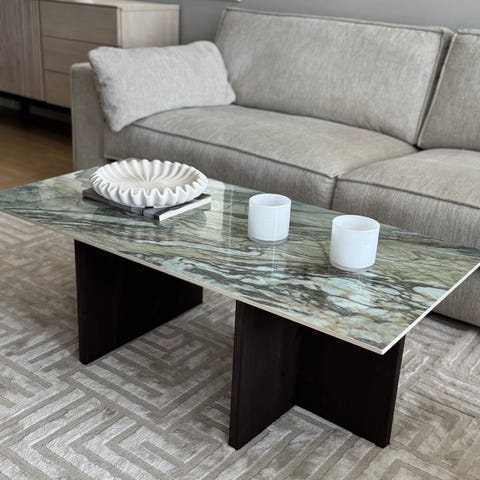 Siden platen er av glass, er den svært slitesterk og veldig enkel å holde ren sammenlignet med ekte marmor som lett får flekker.