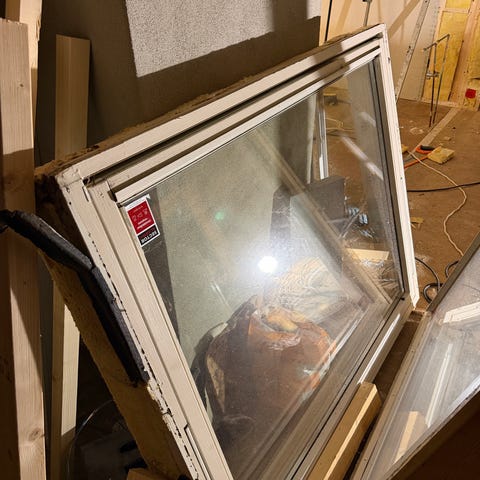 2 stk 80x80 H vindu med «frostet» folie som lett kan fjernes. Fra 89 med har stått tørt og er i meget god stand, Hentes i Bergen 😊