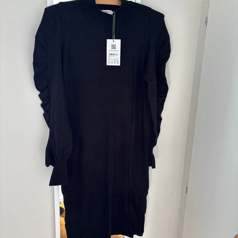 Moss Copenhagen hverdagskjole i svart cordfløyel i størrelse XS. Kjolen har lange ermer og knappestolpe foran. Materialet er cordfløyel som gir en myk og strukturert overflate. Passer som enkel hverdagskjole til ulike anledninger. Jeg synes den er litt stor i str
