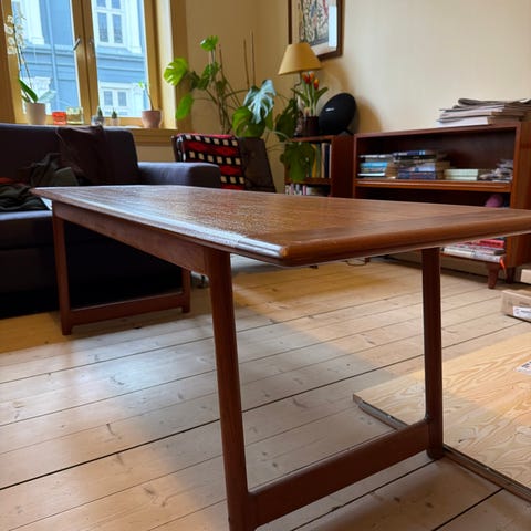 Vurderer å selge dette nydelige vintage trekant teakbordet i teak fra norske Bruksbo design produsert på Myhres industrimøbler i Hønefoss. Kan brukes som salongbord kaffebord og sidebord. Norsk design på sitt beste! Legg merke til de bøyde detaljene på understellet. Må hentes. Mål er tatt fra kant til kant på det lengste.