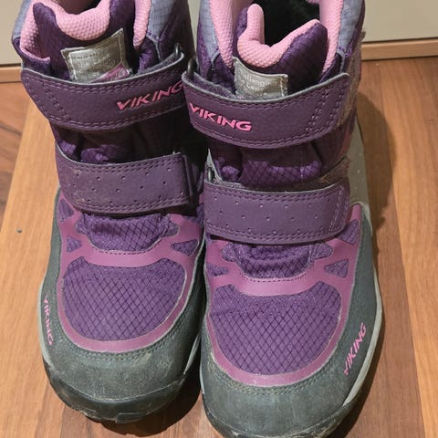 Viking vintersko for barn i størrelse 35, til jente. Skoene har overdel i tekstil og syntetisk materiale i rosa og brune nyanser, med borrelåslukking for enkel av- og påkledning. Kraftig yttersåle i gummi gir godt grep på underlaget. Egnet som vintersko til hverdagsbruk og utendørs lek i kaldere vær.