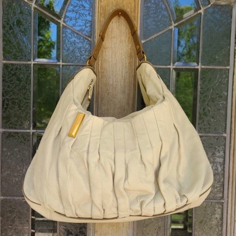 Har noen få bruksmerker på sidene ellers hel og fin. Rommer veldig mye. En liten lomme på innsiden med glidelås og en større sidelomme. Nypris 3300,- skulderstroppen kan tas av og på. Følger med dustbag.