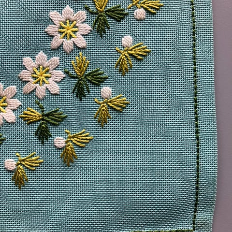 broderi - håndbrodert - bordløper - håndarbeid - husflid - grønn - gul - oransje - rød - blå - vintage - retro - modern - vårlig - sommerlig - påske - kunsthåndverk - tekstilkunst - folkekunst