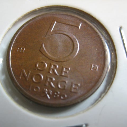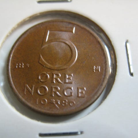 5 øre 1980 m/stjern kv 0 ,selges kr 50.-+porto