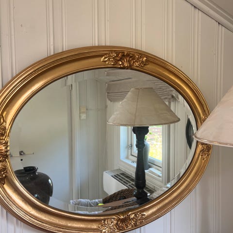 Selger et rundt Speil med gull kant, pent brukt 😁 målene er vist på de siste bildene. Kan hentes på Hareid, evt kjøre i møte 👍🏼