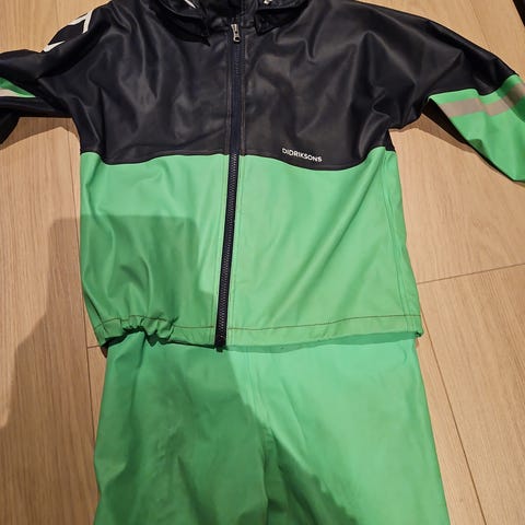 Regnbukse og regnjakke fra Didriksons, størrelse 110.