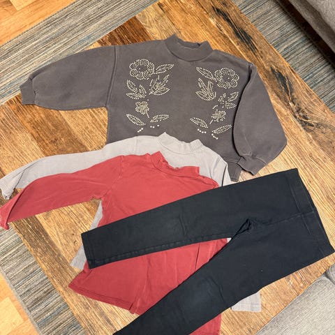 Liten klespakke str 122. Godt brukt så noen av merkene på genserene er vasket ut.