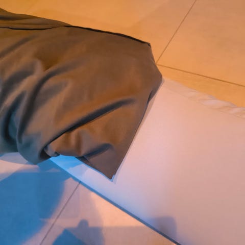 Det er ett lite hull i trekket og ett par flekker som ikke gikk bort i vask. Ikke forsøkt med flekkefjerner.