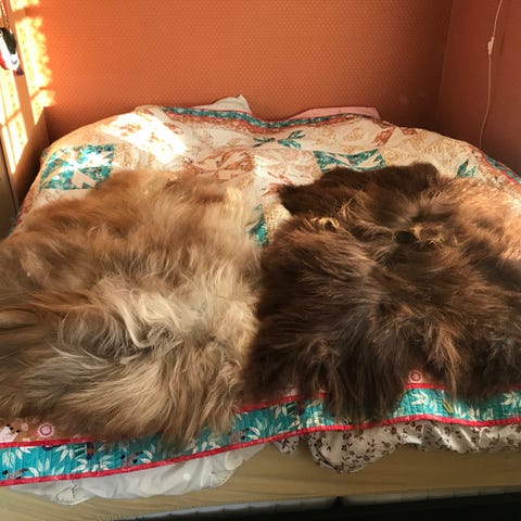 Saueskinn fra Nks, hvite og farget.