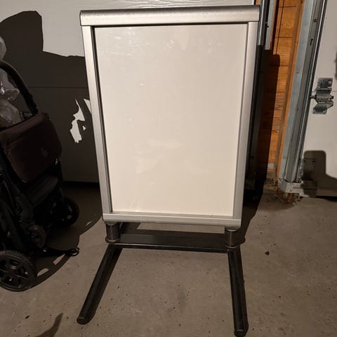 Gatebukk skiltstativ i metall med svart ramme. Dobbeltsidig A-formet konstruksjon som kan plasseres på bakken. Egnet for bruk med plakatinnstikk eller foliering på begge sider. Passer til bruk foran butikk, verksted eller andre inngangspartier for informasjon og skilting.