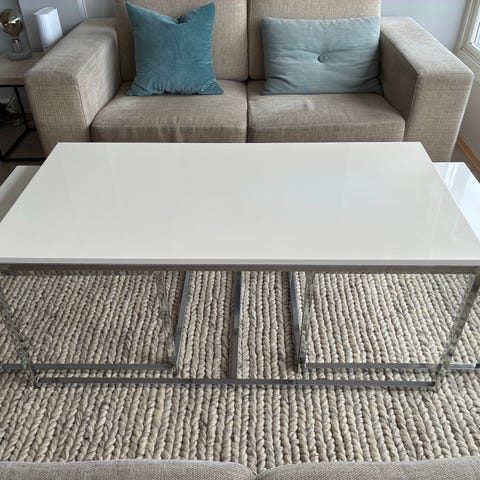 - stort kvit med stålbein og eikekant 60x120 (høyde 44cm)