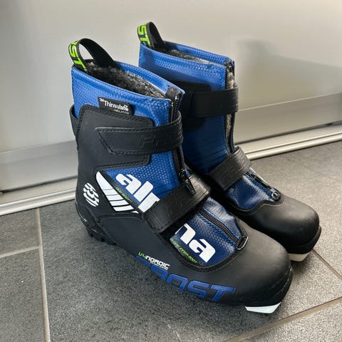 Fôrede Alpina Frost Boy langrennsstøvler for barn i størrelse 28. Modellen er isolert med Thinsulate-fôr og har mykt, pelslignende innerfôr for ekstra varme. Støvlene har glidelås og borrelåslukking over vrist og ankel for enkel tilpasning. Svært pent brukte