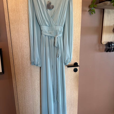 By Malina Just wrap detailed maxi dress kjole til spesiell anledning . Størrelse XL . Brukt kun 1 gang i bryllup 2025. Nyrenset i januar 2026 ( se kvitteringen) Det er en liten prikk helt nede på kjolen og en flekk bak på det ene ermet som ikke gikk av i rens. Ubetydelig når man har kjolen på . Selger den derfor billig 1900,-. Ny pris 5000,-