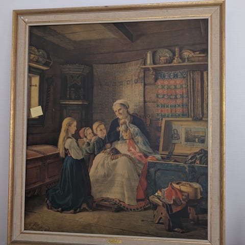 Plakat gis bort mot henting. I ramme.