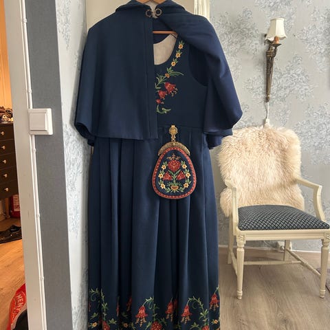 Nydelig sort Løkenbunad , med cape og skjorte . Stor sølje , liten sprette , øredobber, mannsjettknapper og lue . Vi kan tilpasse den mot et tillegg.
