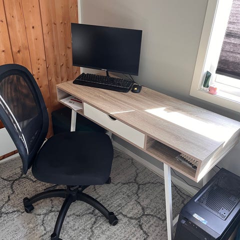 Selger en pent brukt serie med skrivepult, skuffseksjon og stol fra Jysk, ble kjøpt for noen år siden men er lite brukt.