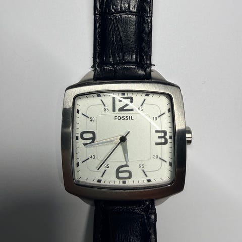 En noe artig Fossil Blue klokke som forandrer farge på urskiven i forskjellige lys.