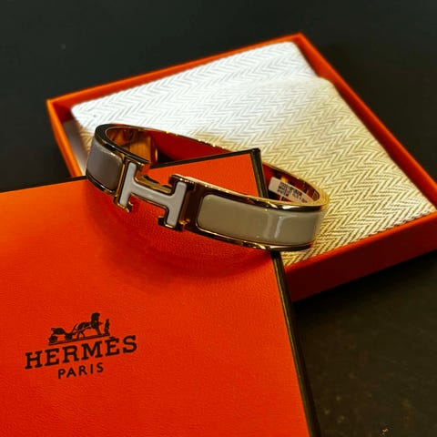 Hvit og sølv Hermes armbånd kvinne.