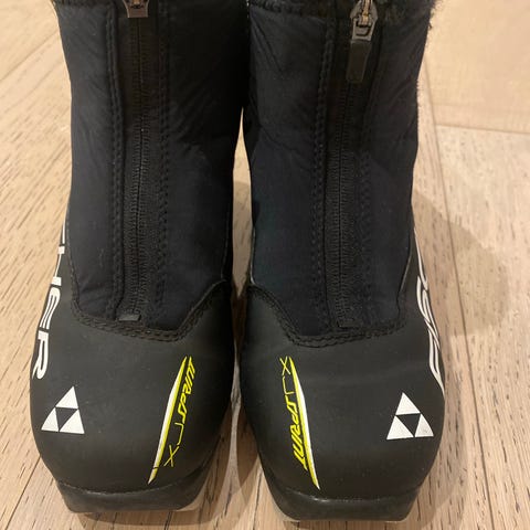 Fischer langrennsstøvler i størrelse EU 37. Fargekombinasjon svart og gul. Støvlene har glidelås foran.