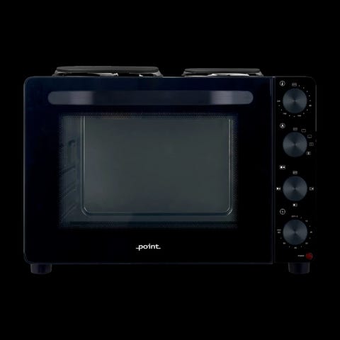 Frittstående ovn med to stekeplater på toppen. Kobles i vanlig stikkontakt.