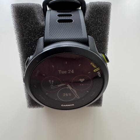 Garmin Forerunner 245 sportsklokke i svart. Ladekabel medfølger.