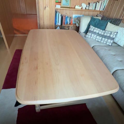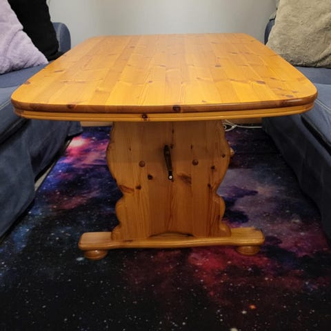 Selger ett godt brukt stuebord. Bruksmerker på bordet etter glass og andre gjenstander, men funker fint som en bord en ikke trenger å være for redd for.