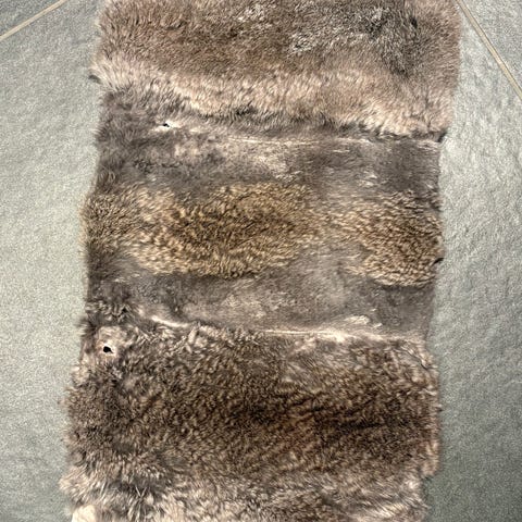 Forsiden har brun, pelslignende overflate, baksiden er i myk, ensfarget tekstil.
