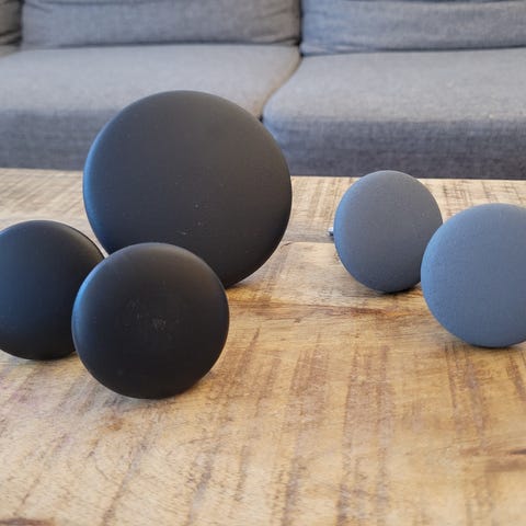 5 store, sorte runde knagger. Ulik størrelse (se bilde)