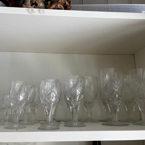Selger mine glass og utstyr fra Krosno. . Alt er uten skår , borsett fra vasen som har et lite skår på toppen. Fremstår som helt nytt da det er veldig lite brukt.