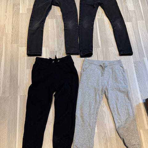 H&M flerfargede bukser til jente i størrelse 122. Buksene er laget av bomull og kommer i ulike farger og mønstre. Passer til hverdagsbruk og kan kombineres med ulike overdeler. Materialet gir et mykt og behagelig plagg for barn i denne størrelsen. (Ene buksen er 7/8 eller kortere sommerbukse fra Tommy Hilfiger)