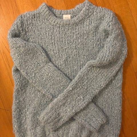 Som ny, lys blå og pen genser med 50 pst alpakka. Liten i