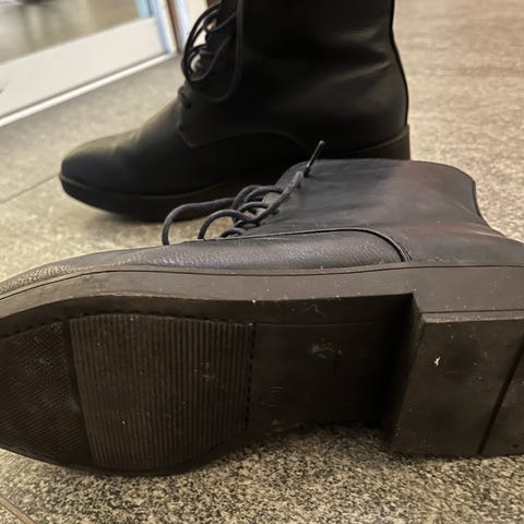 Even&Odd støvler i størrelse 39. Høye, svarte støvler med grov såle og glidelås i siden. Elastisk felt øverst på skaftet for bedre passform. Egner seg til bruk i hverdagen og i kjøligere vær. Veldig fine til kjoler også:-)