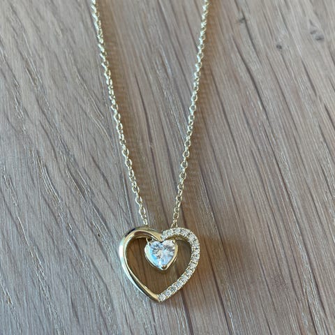 Dette er et elegant hjerteformet anheng laget av naturlig sølv (925). Designet er inspirert av den klassiske «åpne hjerter»-stilen (ligner på Cartier C Heart), med en polert overflate og en liten glitrende stein satt inn i selve hjertet.