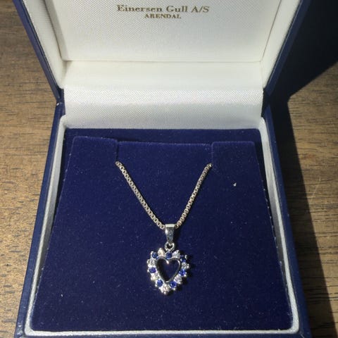 Dette er et elegant hjerteformet anheng laget av naturlig sølv (925)