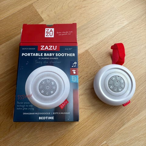 Pent brukt soveklokke som viser barnet når det er natt og når det er morgen. Kan også brukes som vekkerklokke. Kan brukes både med ledning og batterier, men skrua som holder batteridekselet på plass vil ikke skru seg på plass. Vi har løst det med å bruke teip, se bilde. Dette har ikke noe å si for bruken ettersom batteriene holder seg på plass uten dekselet (men greit at barnet ikke får tak i batteriene).