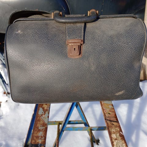 Lærveske brun med beltefeste fra 2. verdenskrig