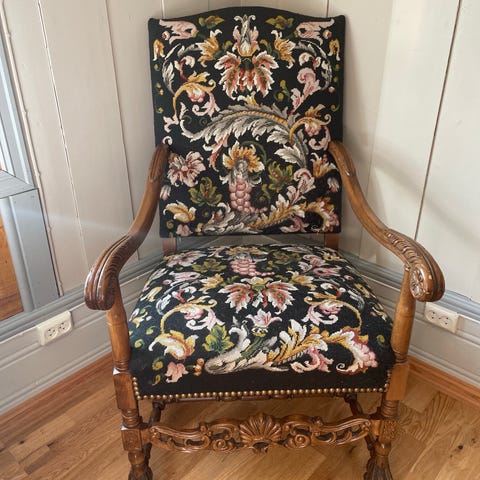 Antikk konge lenestol og drage stoler