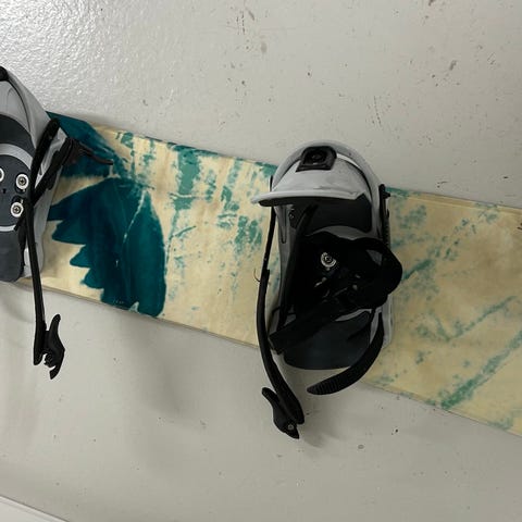 K2 Zipp snowboard med bindinger. Brettet har hvit overside med grafisk motiv midt på, og underside i gult og rosa med K2 Zipp-logo. Leveres med monterte, lyse bindinger. Lengden er 140cm