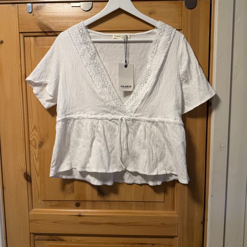 Søt bluse/topp fra Pull&Bear i størrelse L. I fin stand. Selges da den er for stor for meg og dermed ikke blir brukt
