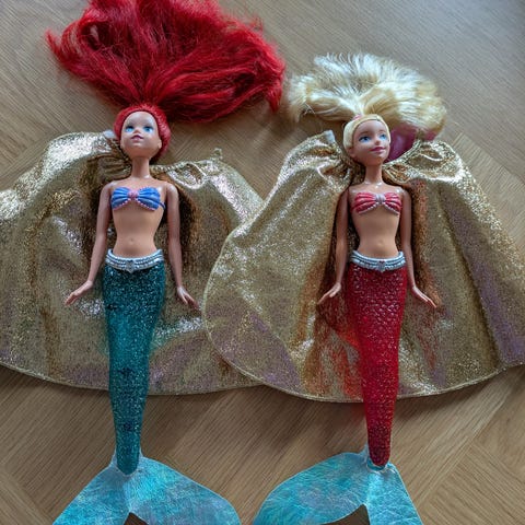 To Barbie havfruedukker selges samlet med badebasseng
