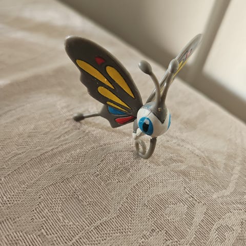 Pokémon Solgaleo figur i hvit plast med gule og oransje detaljer. Figuren forestiller Solgaleo fra Pokémon-serien og har stående positur med markerte detaljer i ansikt, man og hale. Egner seg som leke, samlefigur eller utstillingsfigur for Pokémon-interesserte barn og samlere. Bevegelige bakben. Ca 10x7cm.