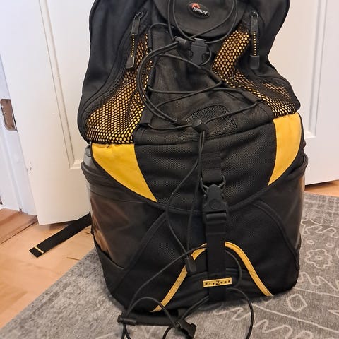 Selger en brukt Gopro Seeker ryggsekk. En lett 16L ryggsekk med plass til både personlig utstyr og dedikert rom for Gopro kameraer og utstyr. I tillegg har den også mulighet for drikke løsninger opptil 2L.