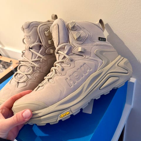 Salomon Odyssey ELMT joggesko i størrelse 38. Modellen er en halvhøy sneaker/joggesko med snøring. Skoene er i en lys beige farge med kombinasjon av tekstil og syntetiske materialer i overdel, og polstret innside for økt komfort. Yttersåle i gummi gir godt grep. Egnet til hverdagsbruk og lett turbruk.