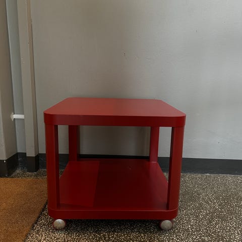 IKEA barnesett med bord og stol med Disney Cars-motiv. Settet består av et lite barnebord og en matchende stol, begge med trykk av figurer fra filmen Cars på sitteflate og bordplate. Møblene er laget i trebasert materiale med malte flater og trykket dekor. Egnet som aktivitetsbord for barn til lek, tegning og andre bordaktiviteter på barnerom eller lekerom.