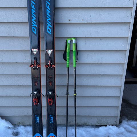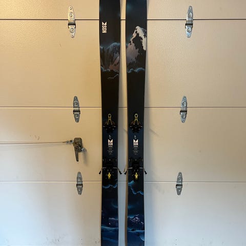 SGN Rakkar ski montert med Atomic Tracker 16 rammebinding. Bindingene har gåfunksjon. Solide og kjøreglade ski som fungerer godt både i heis og på topptur.