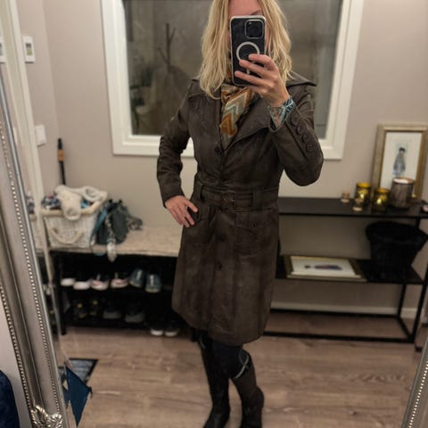 Oversize skinnfrakk , Str S . Kjøpt på slutten av 80-tallet. Pent brukt.