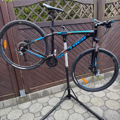 PRO sykkelmekkestativ i metall med justerbar høyde. Stativet har trebeinsfot for stabilitet og en roterbar klemme som festes rundt rammen på sykkelen. Egnet for vedlikehold og reparasjon av ulike typer sykler hjemme eller i verksted. Stativet kan justeres i høyden for å tilpasses bruker og arbeidsoppgave, og kan foldes sammen for enklere lagring når det ikke er i bruk.